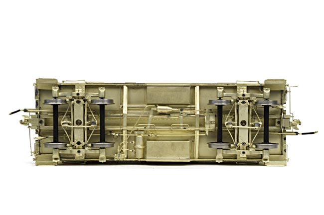 The underside view shows the complete detailing that our models have become known for. Brake rigging, piping and carbody construction details are all included in our development of the C2 prototype miniature.
