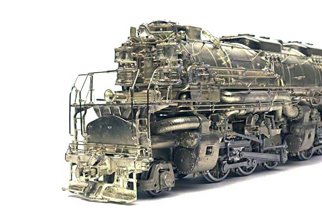 A closer view of the front shows even more detail, items as small as the headlight visor and as large as a major steam pipe to the left front cylinder are yet to be added in the final versions of this model.