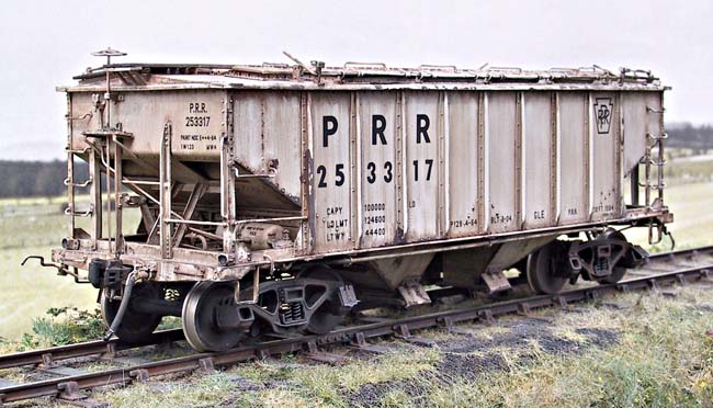 8/01/04 - It has been an incredibly busy month with our participation in the NMRA National Train Show staged in Seattle, Washington, our attendance at the O Scale National Convention in the Washington, DC area and an inspection trip to Korea just completed. Additionally, many of you know that ill health issues have persisted with an aging parent, but fortunately our family has once again come out on the happy side of that situation. We have been promising updates on all of our current and active projects and now after our latest Korea visit, we're in a good position to relate exactly where we stand on each front. We'll be starting with updates online tomorrow and we will also be sending out printed updates to our reservation holders this week, one brief piece of important news has to be related at this point; our Union Pacific project is complete and it our finest project yet, any way you care to measure it. The persistence and dedication exhibited by our builder, Mr. Lee and Mr. Han at Sun Jin Models Company, is unparalleled in the industry and we have to again publicly congratulated them on their outstanding effort. Among the many messages and inquiries that we have received in recent days was the photo shown below and we had to share it with all that are interested in prototypical modeling. The photo is of one of our PRR GLe class cement hoppers that has been exquisitely weathered for one of our clients in the United Kingdom by UK master-modeller Martyn Welch, what a fantastic job! If you have any 'in service' photos of one of the models we have produced and would care to share it, please forward same to us by E-mail or postal mail and we'll be very pleased to post it online.