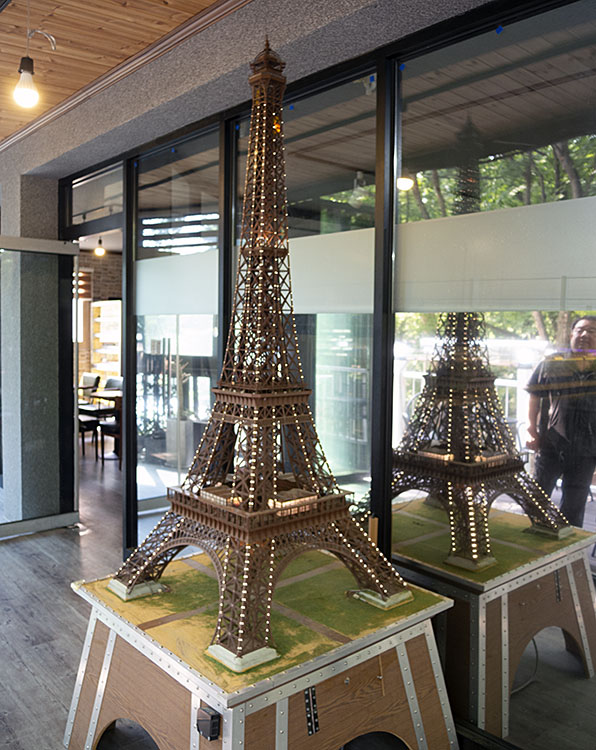Immediately outside the main entrance, you are greeted by the brass Eiffel Tower model that Mr. Lee built several years ago and that was featured on this website when it was originally constructed.