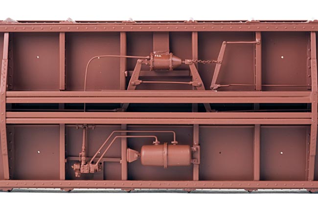 This is a close up view of the underside of our G22b showing the complete detail of the brake system. Also visible are the drain holes in the flooring sheets.