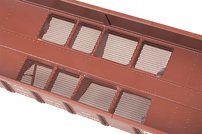 A closer view of the 'expanded metal' floor detail shows the exact reproduction of even the openings in the expanded metal sheets. The side walls again utilize double-wall construction to allow for correct interior and exterior rivet and seam detail. The rivets throughout the model are all punched, not etched, which provides for the correct rivet head profile.