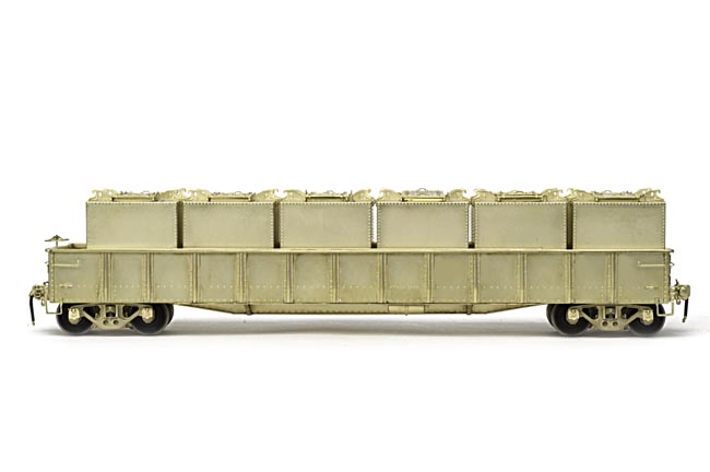An elevation view of our sample model with a full load of 'HB1' containers. Please note that this sample is not riding on the correct 2F-F4 trucks.