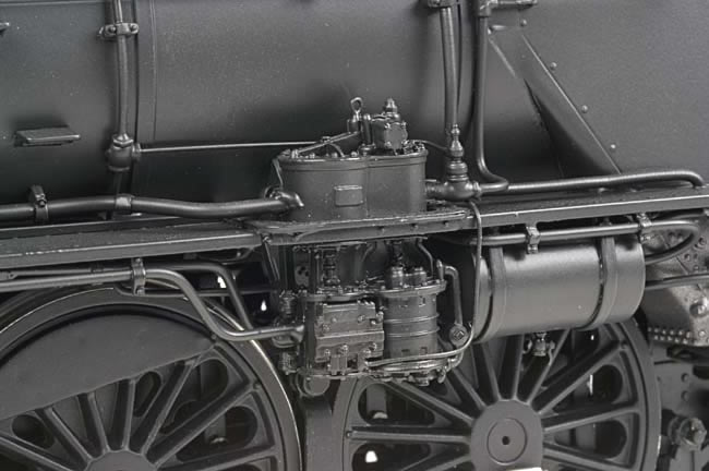 5/11/05 - We have started posting photos of the production process. Although we have shown the construction of early sample models in great detail, we thought that it would be interesting to show more of the actual final production process to provide a better idea of the massive effort required to complete a brass locomotive project. If you have an interest in a particular aspect of the production, let us know and we'll try to give special attention to that process. We hope that you find this enjoyable and informative. 4/28/05 - An informational note to all of our reservation holders; updated reservation statements are being prepared now and will be in the mail by the first of next week. Our apologies for the delay in processing the incremental payments, getting caught up has been very time consuming, but we are getting there slowly but surely! We will be offering update info on the project in general over the next few days so stay tuned for the latest! 4/03/05 - We are now starting to get caught up on our paperwork for this project. We are doing updated statements based on the incremental payments that we have received, so if you have a reservation for a K-4 and have made the latest payment you will be receiving your updated statement shortly. We do appreciate your patience as we struggle even more than usual in trying to stay current. We have written often about the difficulties of documenting this project and making choices related to model configurations, it never seems to get easier, even as we gain more experience. Although the design work is complete and the production is started, we continue in our effort to tweak the detailing based on every new piece of information we receive. Unlike the Union Pacific project where we had extensive information that was fairly chronological and simply had to be digested, with the K-4 we have the same level of documentation, but so much of it is conflicting in terms of what was planned versus what was actually done in practice that trying to achieve the definitive answer on many questions is extremely difficult to say the least. With over four hundred prototypes built and the number of modifications that were made over an extended period of time, pinpointing when and how is a researchers nightmare. The one consoling fact is that we have the best possible assistance in wading through the data. With the planned versions of our model, we have determined that no less than seven (7) variations of the tenders we are offering are mandatory simply based on the different time period configurations. Our next update will highlight what these variations are. The challenge that we have faced has been well understood by most and very constructive comments and input have been offered, as always, that has been greatly appreciated. Another inspection tour is pending and upon completion our new update will be prepared and mailed out to all concerned. 3/06/05 - Reflecting back on the Nürnberg Toy Fair a bit more, it was amazing to us how many of the people attending the show that came up to us had been following the development of the K-4 project online, they were already very familiar with many of the features and intricate detail. The photo below is of the 'Postwar' version sample with a 110P75a tender that was previewed at the show. A third sample was also shown at the toy fair that highlighted prototypical construction of the frame, suspension and boiler, keen attention was paid to the inner workings of the model as that level of detail was unique among the models being displayed by all of the manufacturers/importers. The natural progression of questions led to 'what European prototypes will you be doing with this same level of detail'?