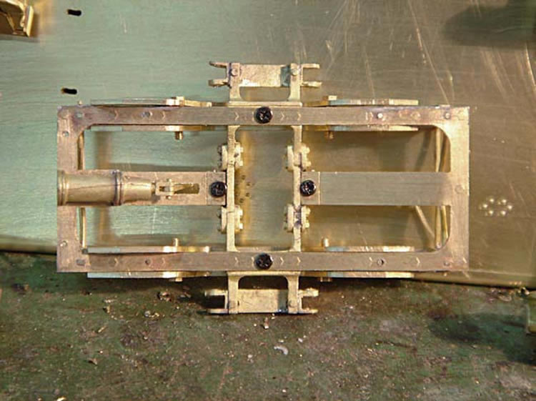 The basic frame structure of the K-4 lead truck, you can see the brake cylinder to the left of the photo. All of the fasteners used at this point in the development are temporary and will be replaced with scale type fasteners.