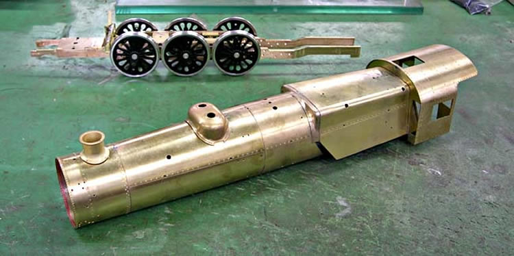 The flat sheet metal has been formed and soldered together to form the beginnings of the smokebox, boiler, firebox and cab. There are a number of compound shapes and surfaces that have to be recreated and this is a very time consuming process if accuracy is your goal