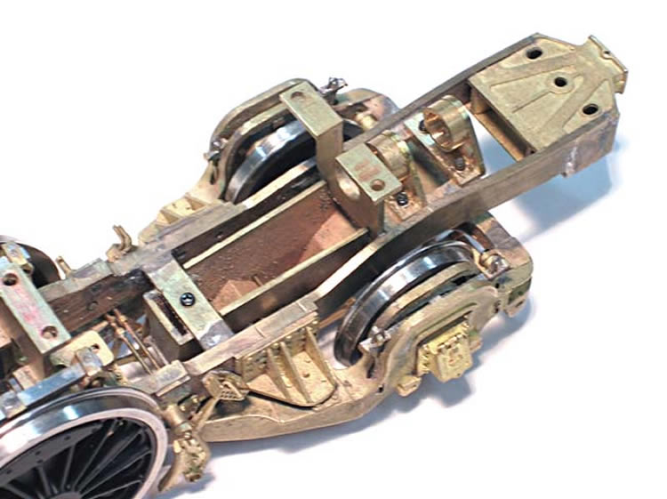 Even the trailing truck is fully detailed with working suspension including frabricated leaf springs. The trailing truck suspension is equalized with the main drivers.