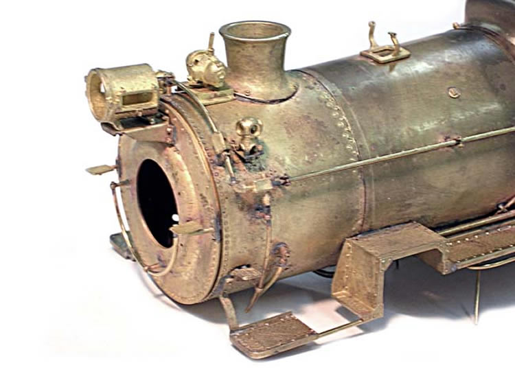 In this view you can see some of the detail located in the smoke box area, the running boards are hung on prototypical brackets the full length of the boiler. All rivetting on the boiler is punched.