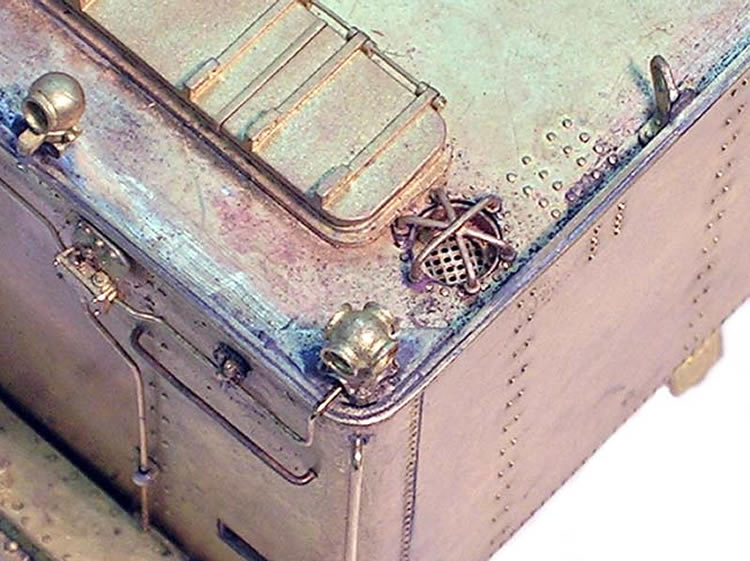 A closer view of some of the detail included on the tender deck, you can see the lifting 'eyes' near the edge, the sectional cistern hatch and even the foot guard and strainer for one of the deck drains.