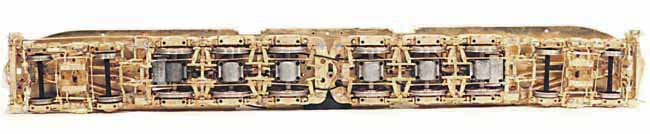 As you can see in this underside photo, every axle is powered by interconnected gearboxes