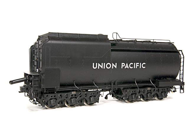 A rear 5/8 front view of the 'post-war' tender showing it's modernized graphics. All rivet detail on both the locomotive and tender is punched not etched to give the rivet heads the correct shape.