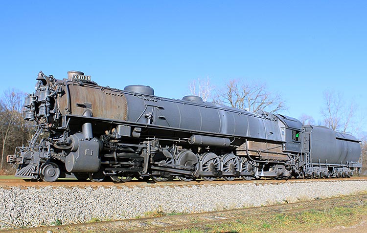This fireman's side view of the 9000 shows off some of the weathering detail at the front of the locomotive.