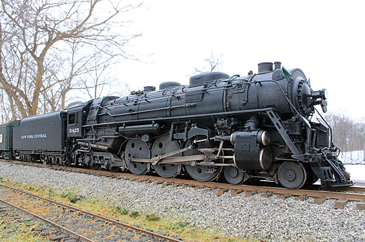 Above is an engineer's side view of the NYC J3a, you can better see the 'bright' cylinder in this photo. Also notice the added detail of the signal flags hanging from the smokebox front.