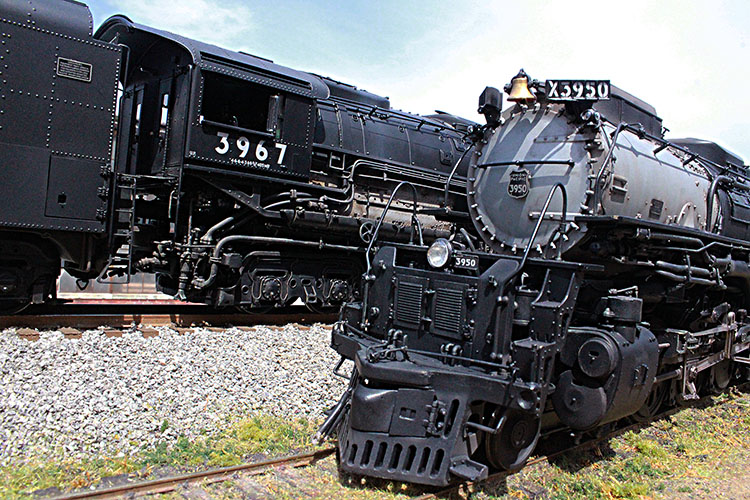 | A closer look at 3950 shows how the pilot and smokebox areas are beginning to accumulate a degree of 'character' from road service. Sometimes the weathering amounts to a simple change in the level of sheen or gloss of the paint, a level of skill that can be more challenging than applying dirt and stains everywhere and calling it good. | ||